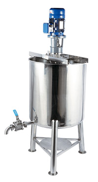 Single jacketed bottom dish plate tank. Draining outlet located on bottom of dish plate which is suitable for pump conveying and enable for draining of material smoothly. |